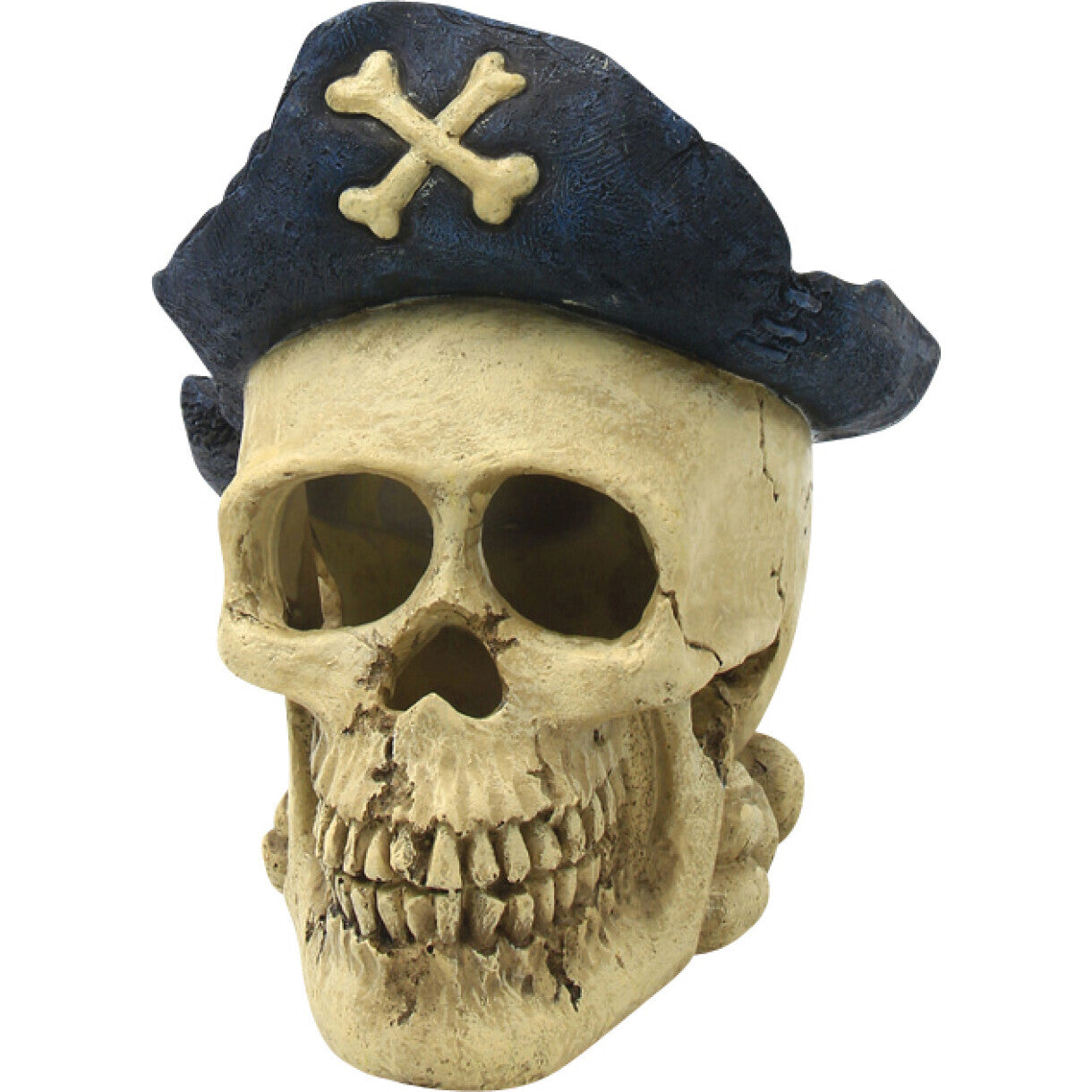 4FISH akvarie dekoration Kranie med pirat hat 16 x 13 x 15,8 cm