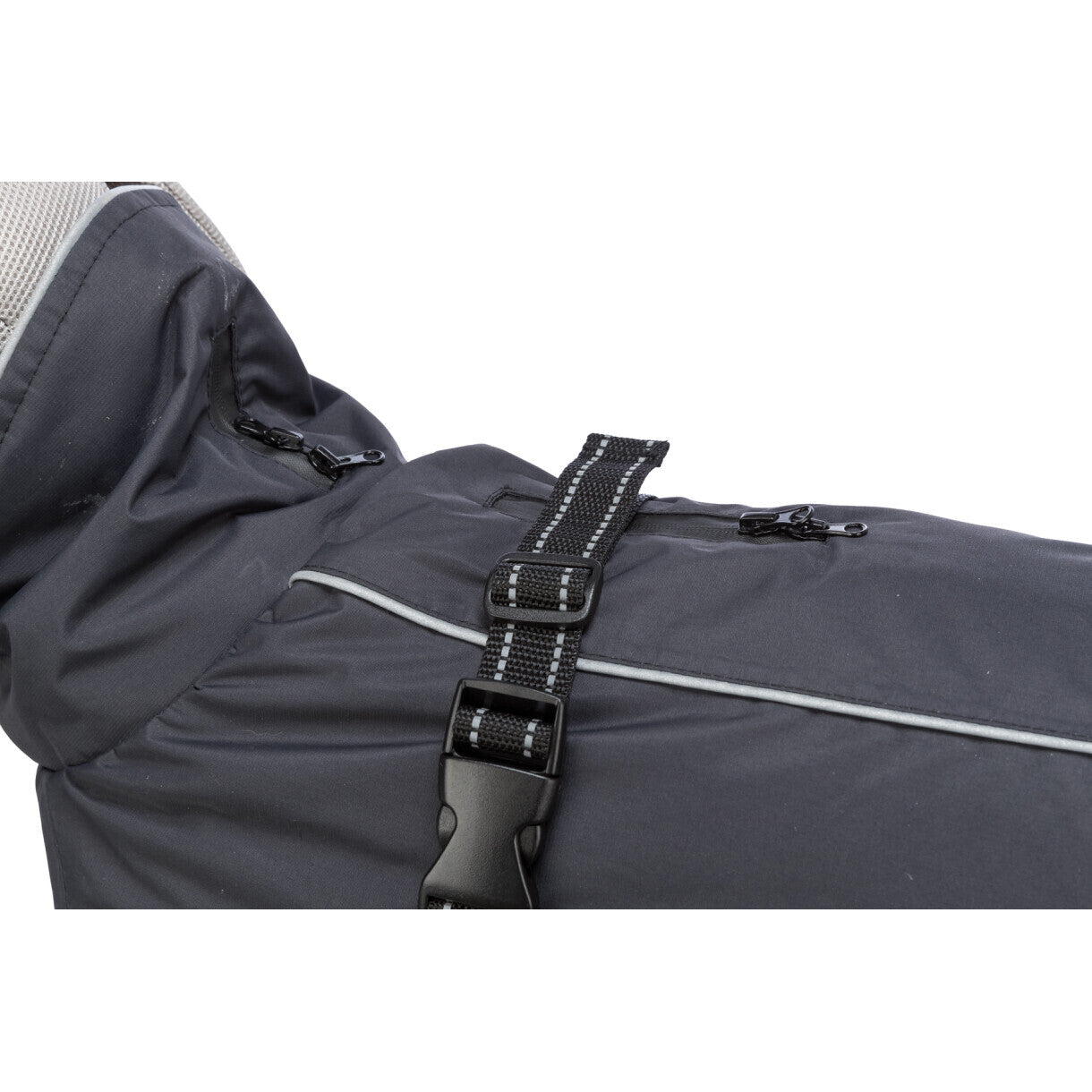 • med to vandtætte lynlåse til at kombinere med en krave eller sele