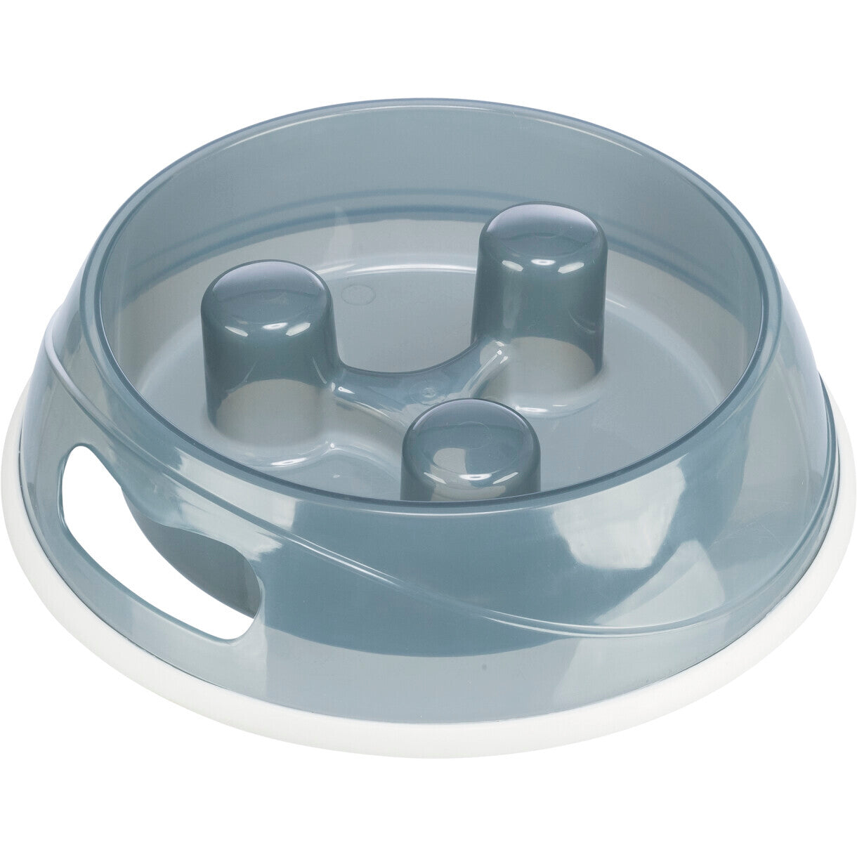 Denne Slow Feed skål er designet med en række toppe/ forhindringer i bunden, som hæmmer dyret i at sluge foderet for hurtigt. Disse forhindringer opmuntrer til langsommere spisetid, hvilket kan bidrage til bedre fordøjelse og mindske risikoen for fordøjelsesproblemer såsom opkastning eller ubehag. Skålen er også udstyret med en skridsikker gummiring i bunden, der hjælper med at forhindre, at den skrider eller bevæger sig under brug. Dette sikrer, at dyret kan spise komfortabelt og stabilt uden at skålen flytter sig rundt. Samlet set giver Slow Feed skålen en praktisk løsning til at fremme sund spiseadfærd hos dit kæledyr og skabe en behagelig spiseoplevelse.