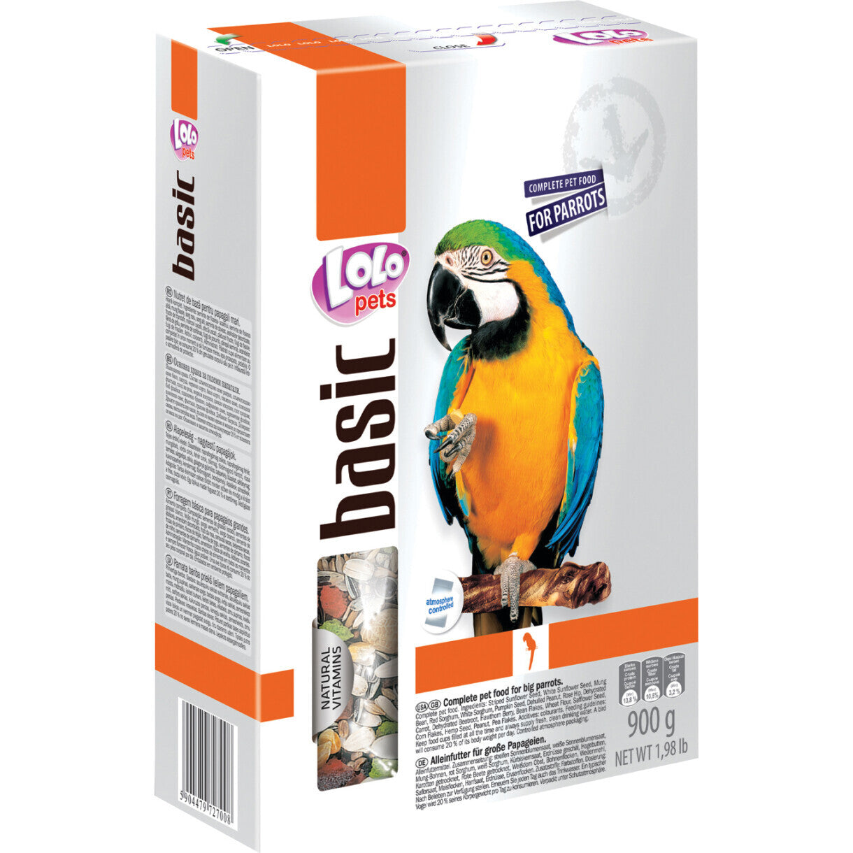 Denne perfekt afbalancerede fuldfoderblanding er udviklet til store papegøjer, for at give dem et usædvanligt velsmagende foder, som samtidig indeholder alle de nødvendige ingredienser, der understøtter fuglens sundhed. Sammensat af et varieret udvalg af frø og korn med tilføjelse af papegøjedelikatesser: græskarkerner, hyben, tørrede chilipeber, som er en delikatesse for papegøjer. Nødder er en god kilde til protein, mineraler og sunde fedtstoffer. Mungbønner indeholder en masse værdifuldt protein, hvis aminosyrer påvirker dannelsen af fjer og deres sunde udseende. Det er også en rig kilde til fibre, vitaminer og mineralsalte.