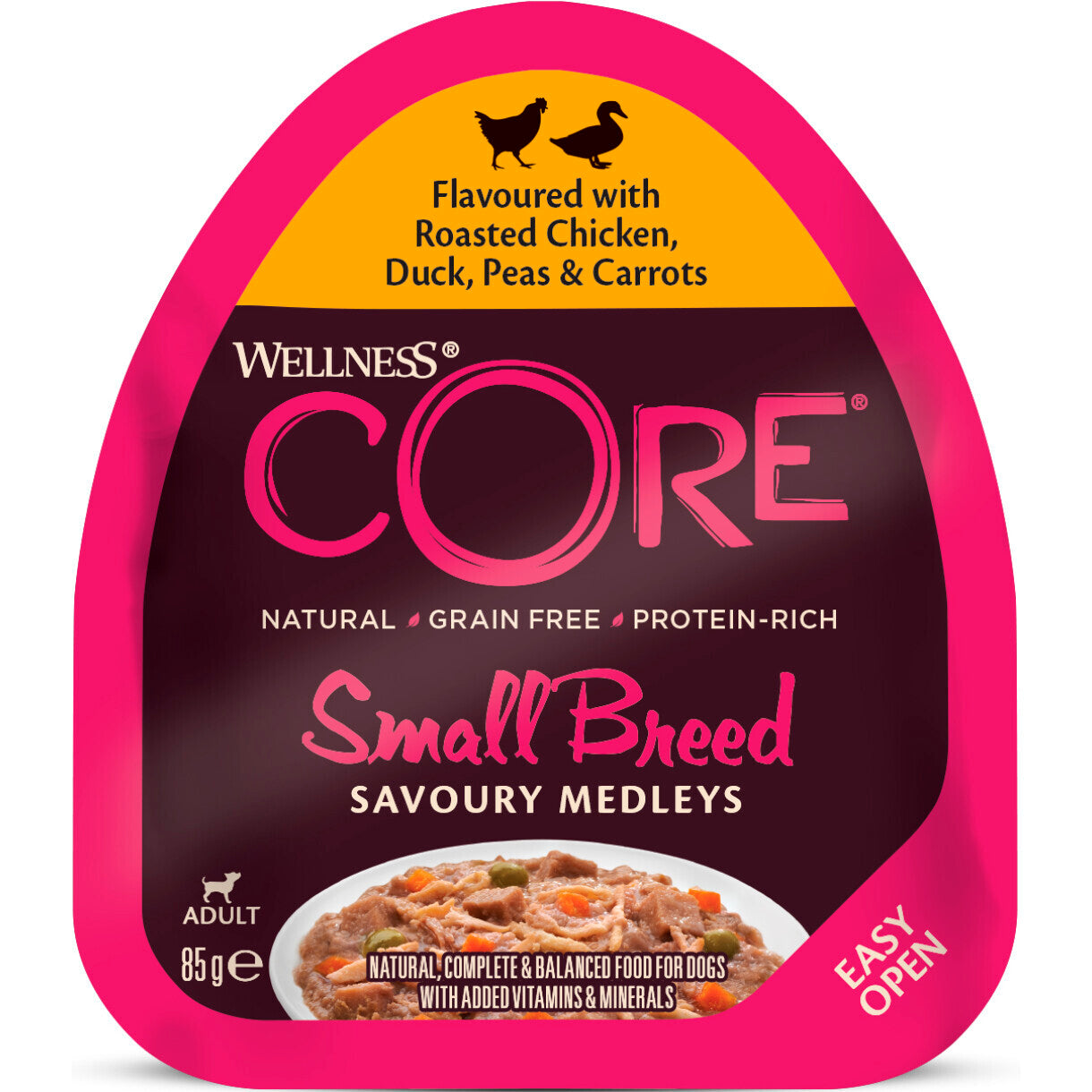 85 gr CORE hundevådfoder til mindre hunde med kylling - and og grønsager - kornfri
