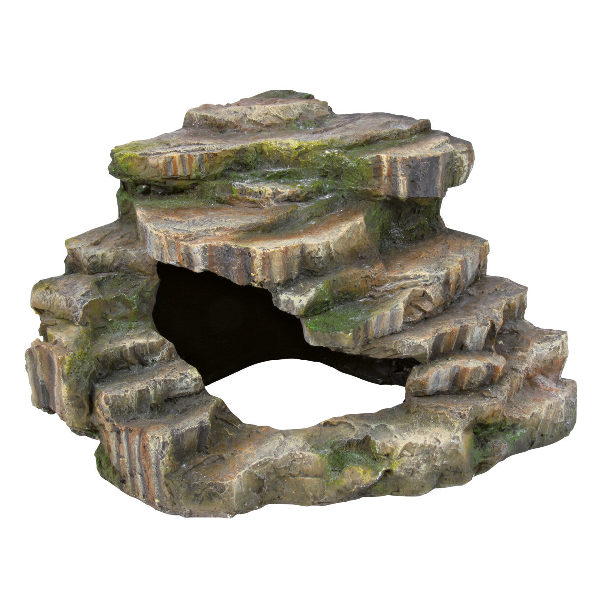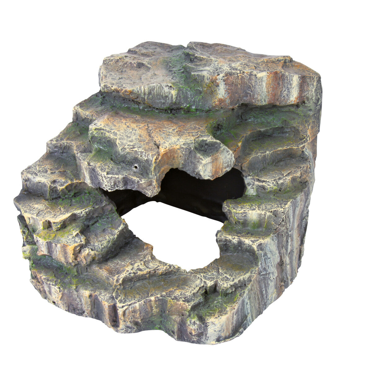 Hjørnestenen med et naturligt look og regnskovsdekoration tilbyder et pladsbesparende tilflugtssted, ideelt til terrarier og akvarier. Fremstillet af holdbart polyesterharpiks giver stenen et realistisk udseende og skaber et berigende miljø for krybdyr. Den er designet med fokus på funktionalitet og pladsudnyttelse, hvilket gør den velegnet til terrarier med begrænset plads. Hjørnestenen tilføjer ikke kun et autentisk præg til miljøet, men giver også krybdyrene mulighed for at finde sikkerhed og skjulesteder.