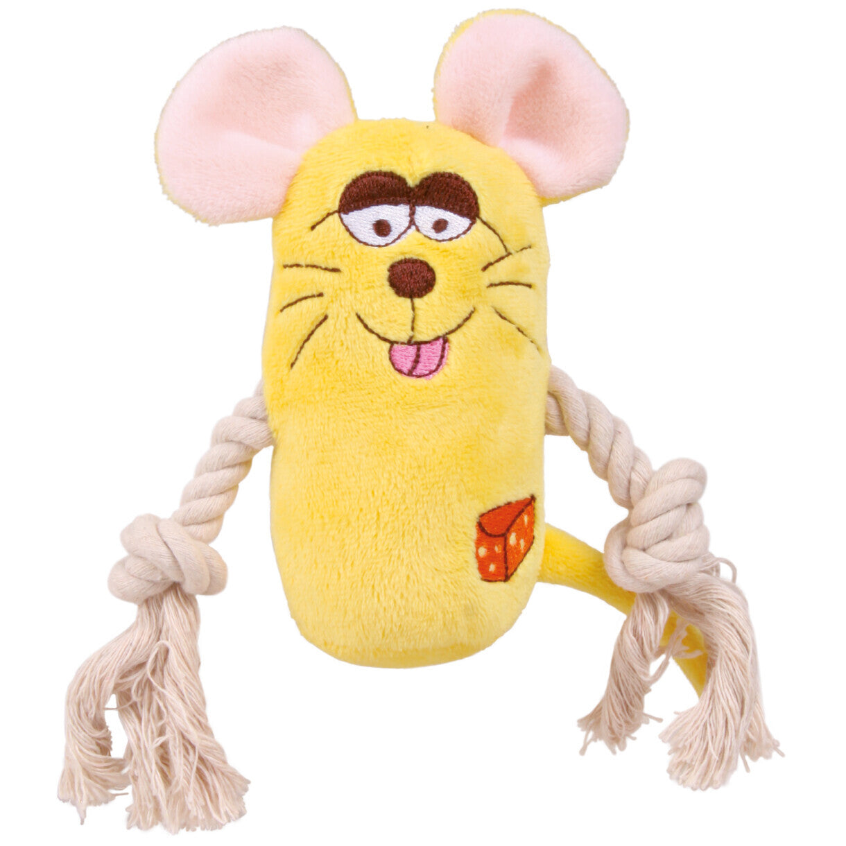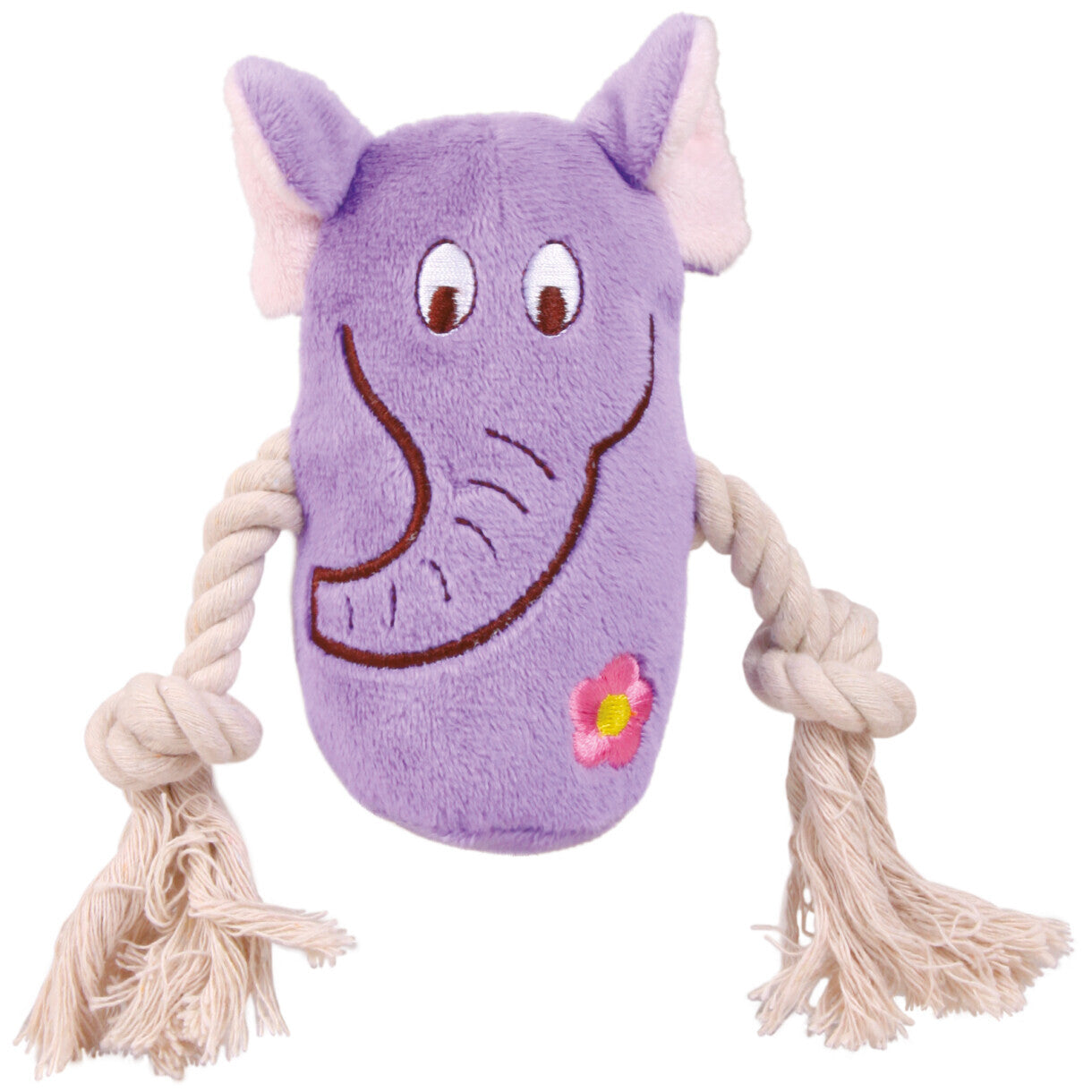 Trixie hundelegetøj Plysdyr med reb og lyd 13 cm - assorteret farver