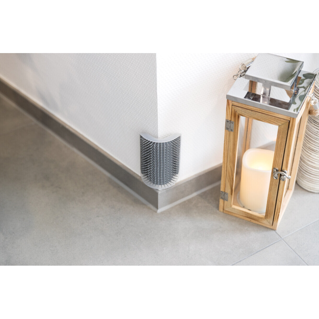 Denne massagebørste der kan monteres på væghjørnet er det perfekte alternativ til traditionelle pelsbørster, og giver katten mulighed for lidt ekstra massage, lige når den har lyst. Den er designet til at fremme kattens naturlige pelspleje ved at massere og fjerne løst hår. Børstens fleksible børster sikrer en behagelig oplevelse for din kat, samtidig med at den effektivt fjerner overskydende hår. Børsten er specielt designet til at blive monteret på hjørner eller lige overflader, hvilket gør det nemt at placere den et sted, hvor din kat ofte opholder sig. Børsten kan fyldes med katteurt, således at katten bliver tiltrukket.