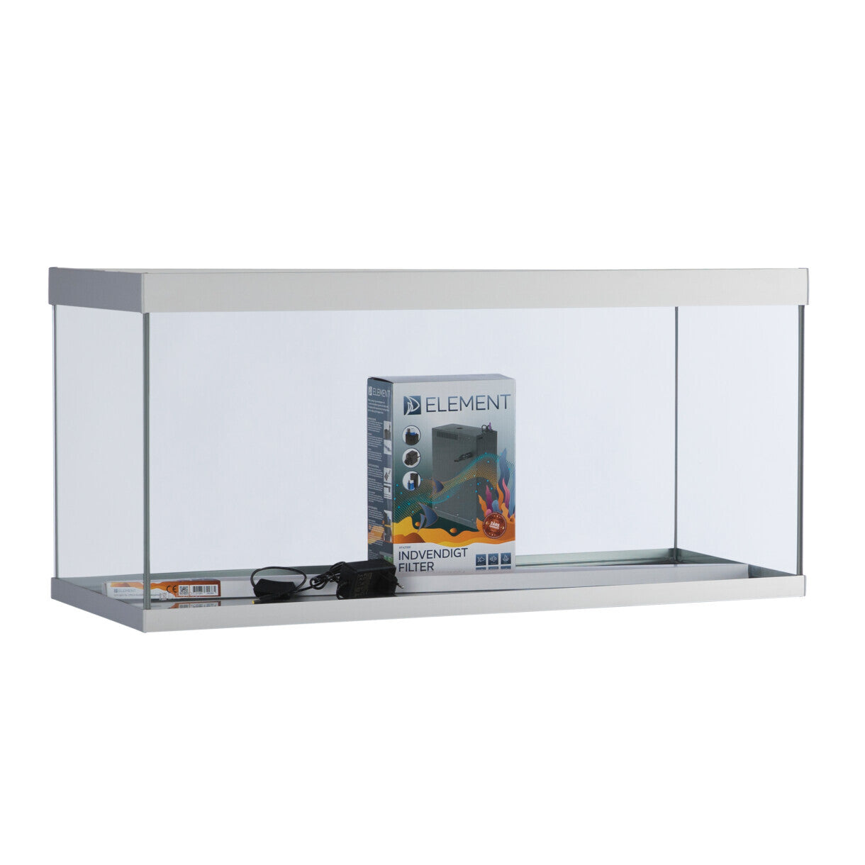 AkvaStabil element akvarie - 100 x 40 x 48 cm - sølv - med filter - varme og LED-lys - 180 liter