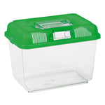 Transport- og foderboksen er ideel til transport, opdræt og fodring af reptiler og amfibier. Den er velegnet til at holde foderdyr og kan også fungere som en midlertidig karantænezone. Boksen har et låg med håndtag og en åbning til fodring. Der er også en ekstra sidedør til fodring, når kasserne er stablet. Den er lavet af plast, hvilket gør den nem at rengøre og vedligeholde.