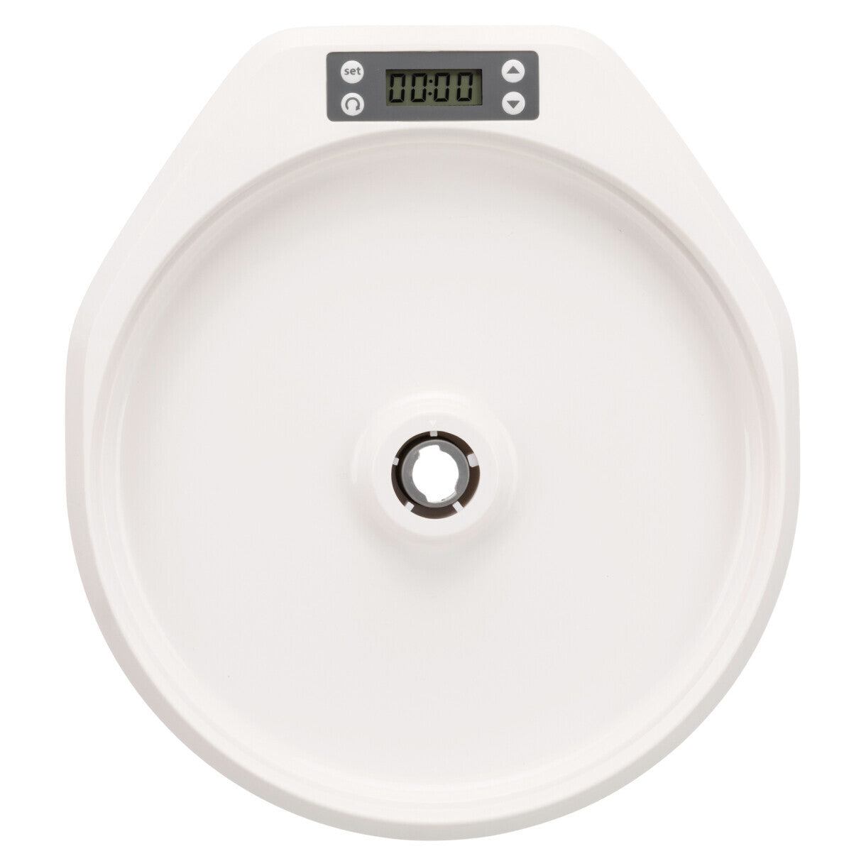 TX4+1 automatisk foderautomat er en praktisk løsning til automatisk fodring af dit kæledyr. Denne hvide/grå foderautomat har en kapacitet på 5 x 0,25 liter, hvilket muliggør op til 4 fodringsintervaller om dagen. Foderautomaten er designet til at levere 4+1 måltider af 0,25 liter, hvilket gør den velegnet til både små mængder tørfoder og vådfoder. De medfølgende foderskåle kan let fjernes og er egnet til opvaskemaskinen, hvilket gør rengøringen bekvem. Produktet er batteridrevet og kræver 4 AA-batterier (ikke inkluderet). Denne foderautomat tilbyder en pålidelig måde at automatisere fodringsrutinen og sikre, at dit kæledyr får passende måltider i løbet af dagen.
