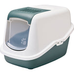 Kattetoilettet Nestor er nemt at rengøre. Den specialudviklede foldbare front kan åbnes således at åbningen bliver meget stor. Derved kan det beskidte kattegrus fjernes nemt og hurtigt, uden at skulle afmontere den øverste del. Nestors bakke har en forhøjet bagside, som forhindrer lækager. Med indbygget håndtag, svingdør i plast og kulfilter til lugtreduktion.