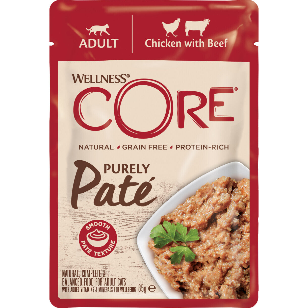 Wellness CORE Purely Pate med kylling og oksekød til voksne katte.
