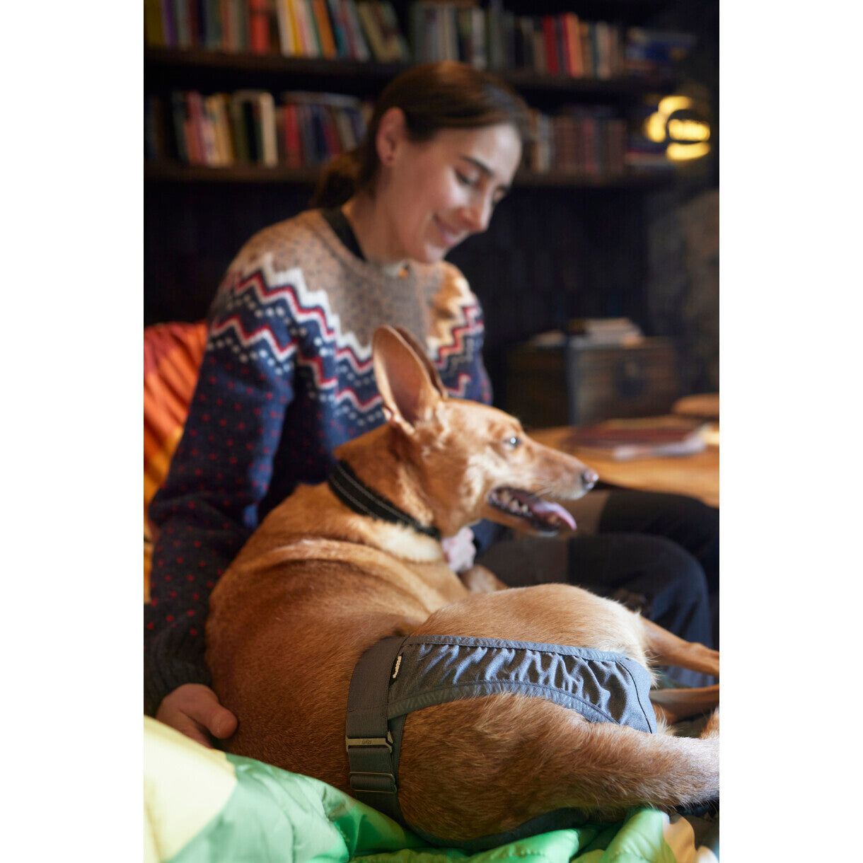 Designforbedringerne i den nye ECO-version kan både ses og mærkes. Det lette stof løber langs hundens side eller ribben og giver en bedre pasform til halen takket være den udskårne wraparound-styling. Den justerbare elastiske linning er lavet af et blødt og fleksibelt materiale, som giver en behagelig pasform, der bliver på plads, selv når hunden løber hurtigt. Det smarte kroglukningssystem har en let og holdbar metalkrog, der lukkes hurtigt og nemt og sidder godt fast uden at hive i hundens pels.