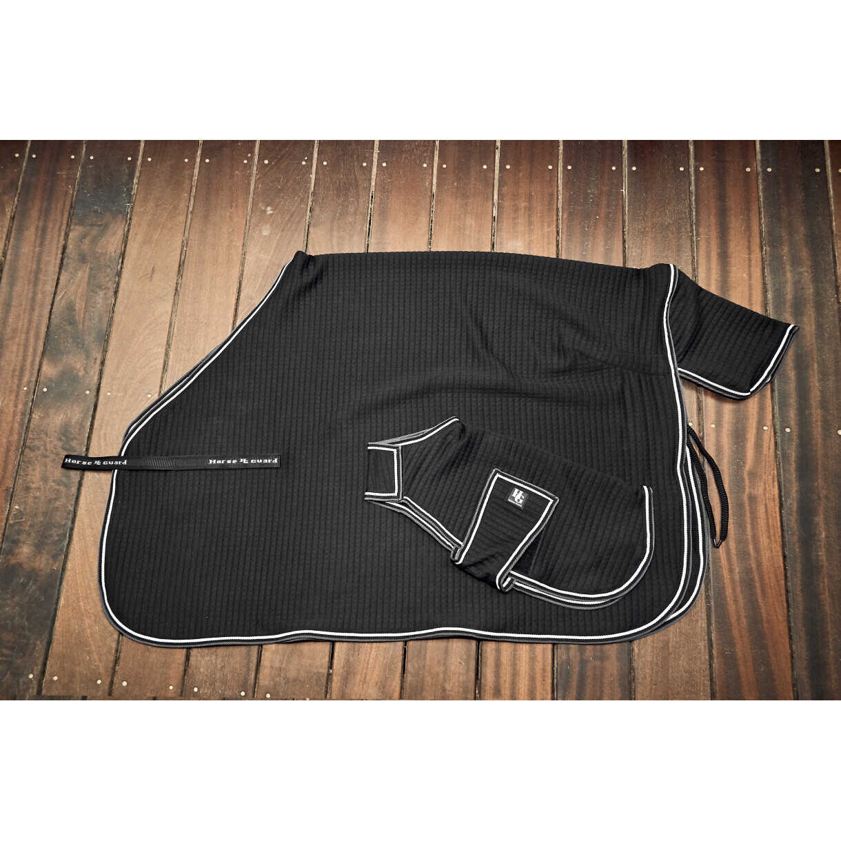 Strikket cooler hundedækken med quilt effekt. Front velcro lukning og velcrolukning om maven. 100% polyester