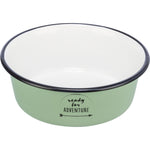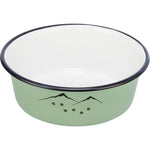 Dette produkt er en skål lavet af emalje og rustfrit stål. Skålen kommer i en frisk grøn farve og er designet til at være skridsikker takket være de integrerede silikoneprikker. Den kombinerer holdbarheden af rustfrit stål med det stilfulde udseende af emalje, hvilket gør den velegnet til både praktisk brug og æstetisk appel. Denne skål er ideel til servering af vand eller mad til dit kæledyr og passer perfekt til enhver hjemmeindretning.