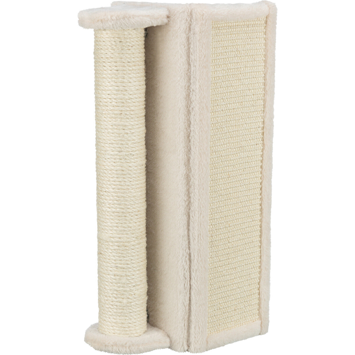 Kradsebrætet til hjørner med en stolpe er det ideelle valg for at beskytte dine møbler mod din kats naturlige kradseinstinkt. Sisal-fibre udgør den naturlige og robuste overflade, der er essentiel for at hjælpe din kat med at pleje dens kløer. Bagsiden er dækket med plys (polyester) for ekstra komfort. Dette kradsemodul er designet til vægmontering og er en ideel løsning for at tilfredsstille din kats behov for kradsemuligheder på en skånsom måde.