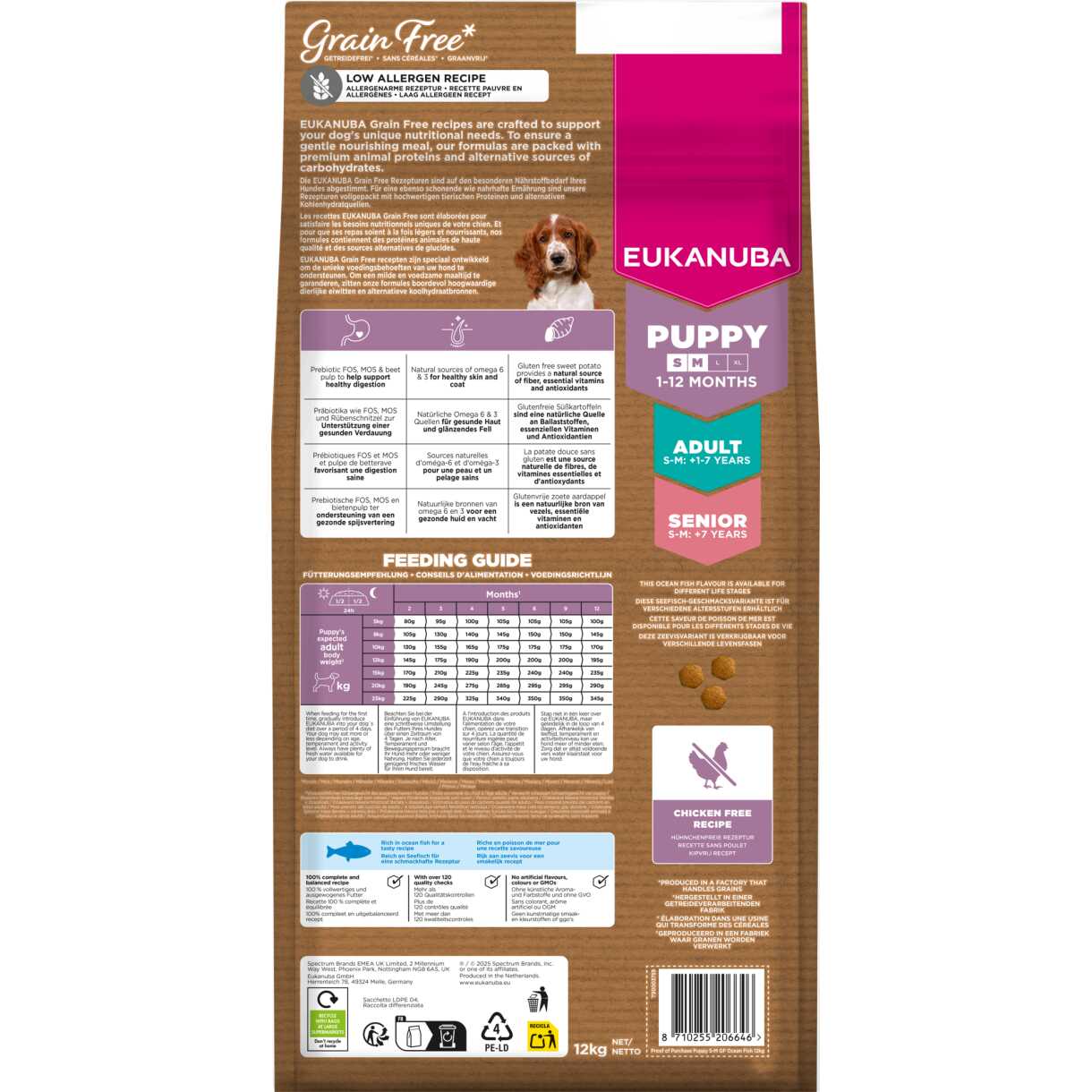 12 kg EUKANUBA Puppy & Junior og hvalpefoder med havfisk Small/Medium kornfri