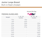 Eukanuba tørfoder er rig på fersk kylling og perfekt til unghunde af store racer i alderen 12 til 18 måneder (14 måneder til 2 år for kæmpe racer).