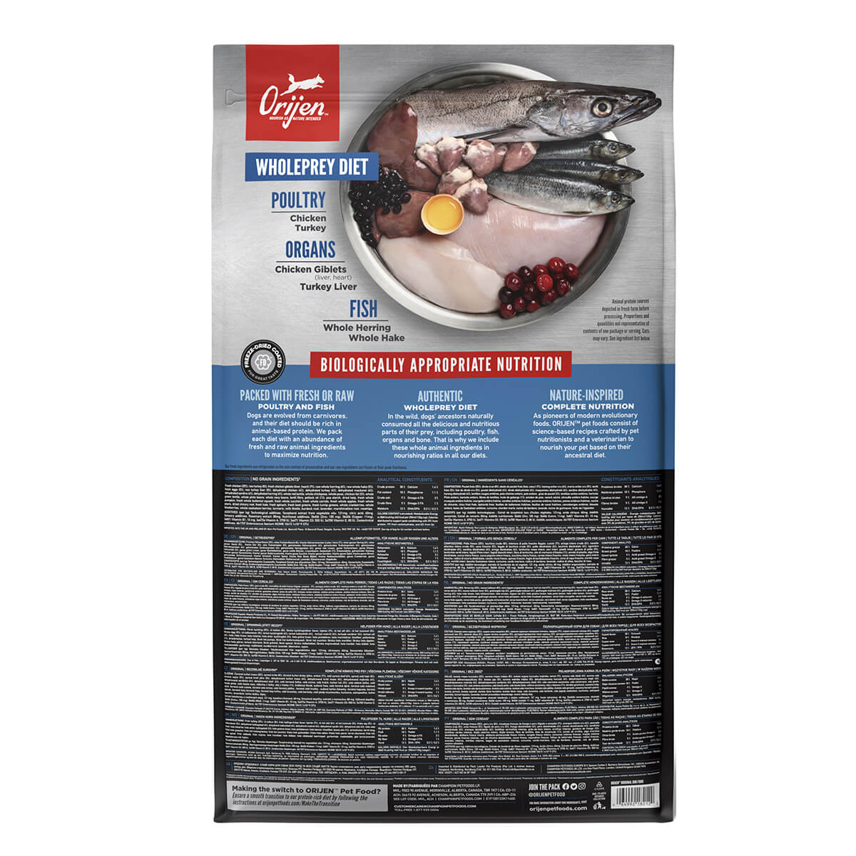 Hjælp din hund med at trives med proteinrige opskrifter, der giver maksimal næring. Hunde er nedarvede kødædere, så de har brug for en Biologically Appropriate™ kost, der er rig og varieret på hele animalske ingredienser. ORIJEN Original foder er fyldt med 85% animalske kvalitetsingredienser som fersk eller rå kylling og kalkun, og vildtfanget eller bæredygtigt opdrættet fisk. Fyldt med WholePrey dyreingredienser som organer og brusk er ORIJEN™ foderet lavet med de næringstætte, saftige dele af byttet for at levere den næring, hunde har brug for. Resultatet er en kost til din hund, der er uden sammenligning.