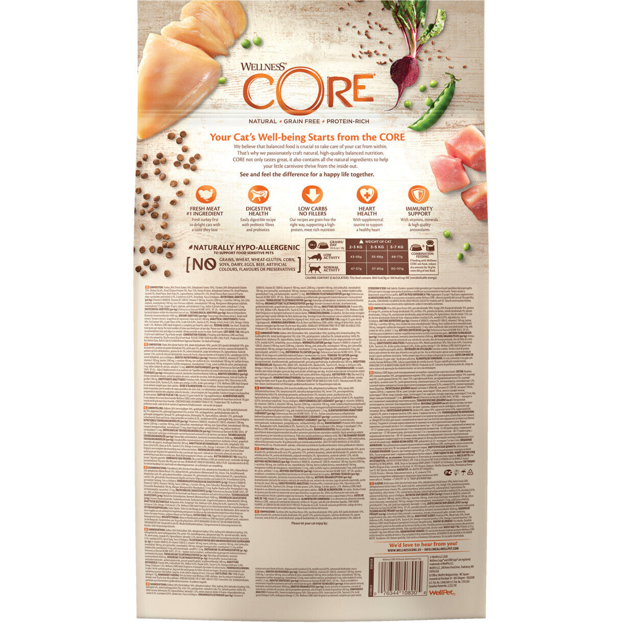 Wellness CORE Original Chicken and Turkey Grain Free Dry Adult Cat Food kan fodres alene som tørfoder eller som en del af en blandet foderdiæt.