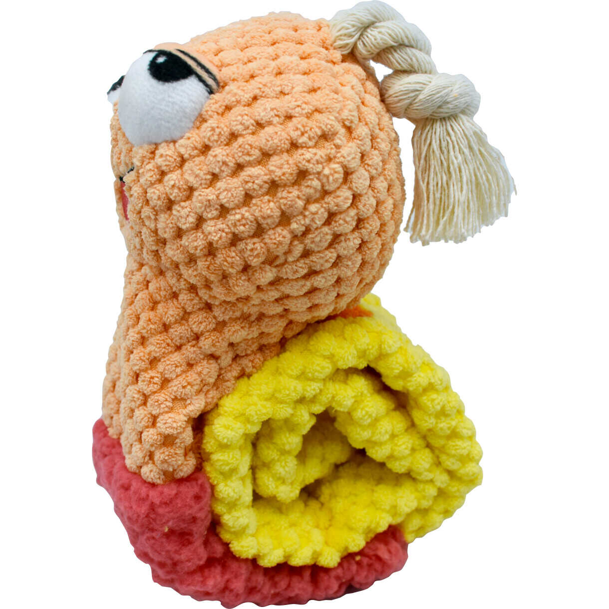 Sjov og stimulerende sneglebamse i blød plys – perfekt til aktivering og gemmeleg med snacks.