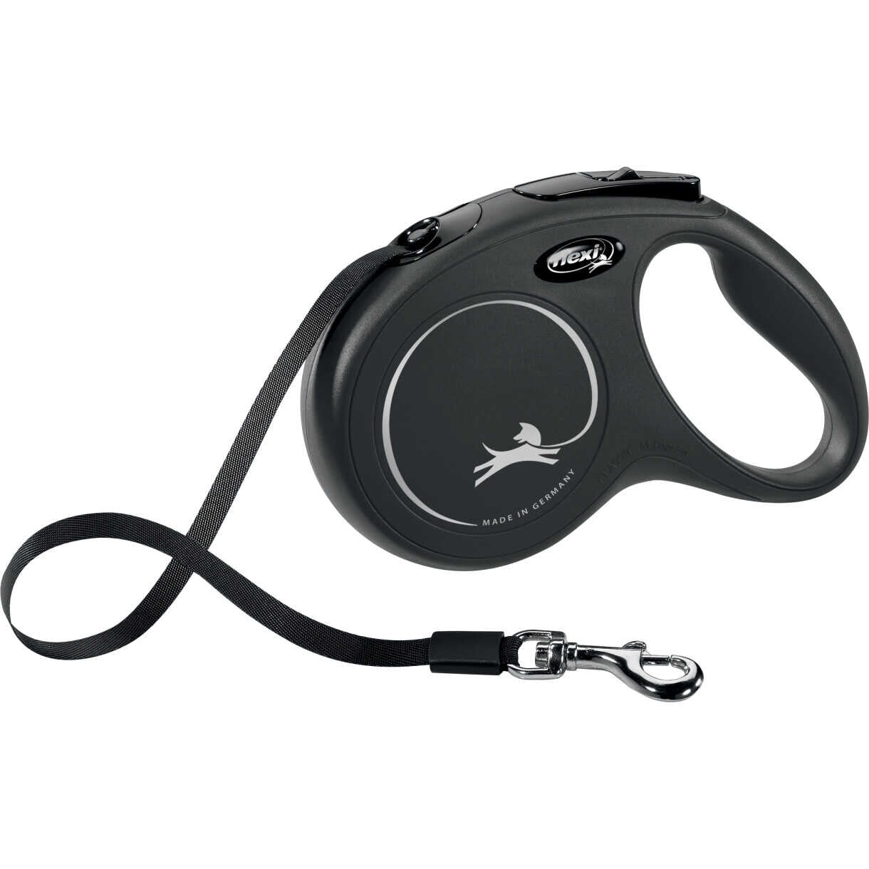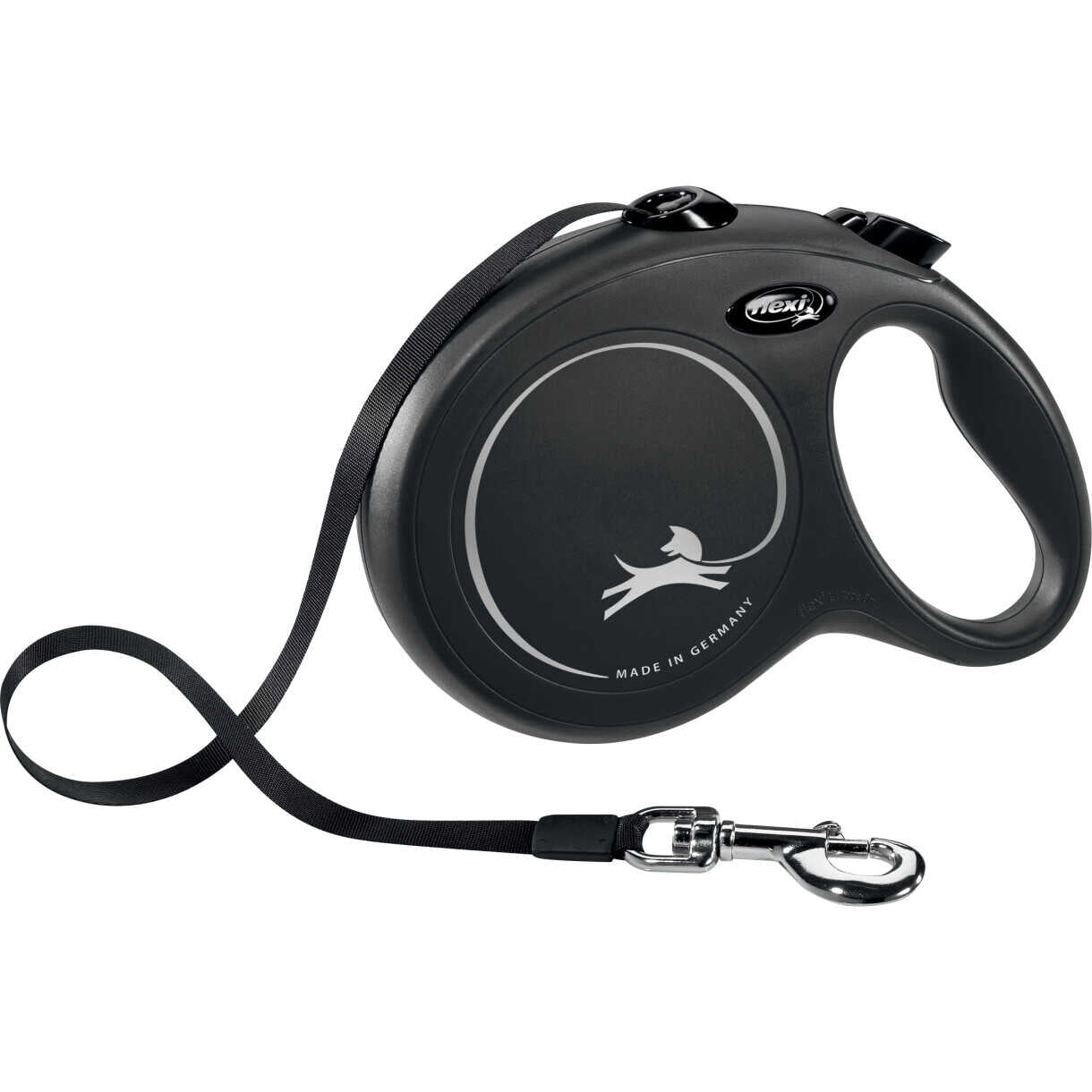 flexi New Classic er en serie af flexi rulleliner, som har et supergodt bremsesystem, som samtidig er nemt at betjene, også for børn. Linen er stærk, og sikrer god forbindelse mellem dyr og menneske. Det behagelige, enhåndsbetjente bremsesystem hindrer at hunden giver et ryk og gør jeres daglige gåture til en leg. Fås med forskellige linelængder og til flere hundestørrelser.