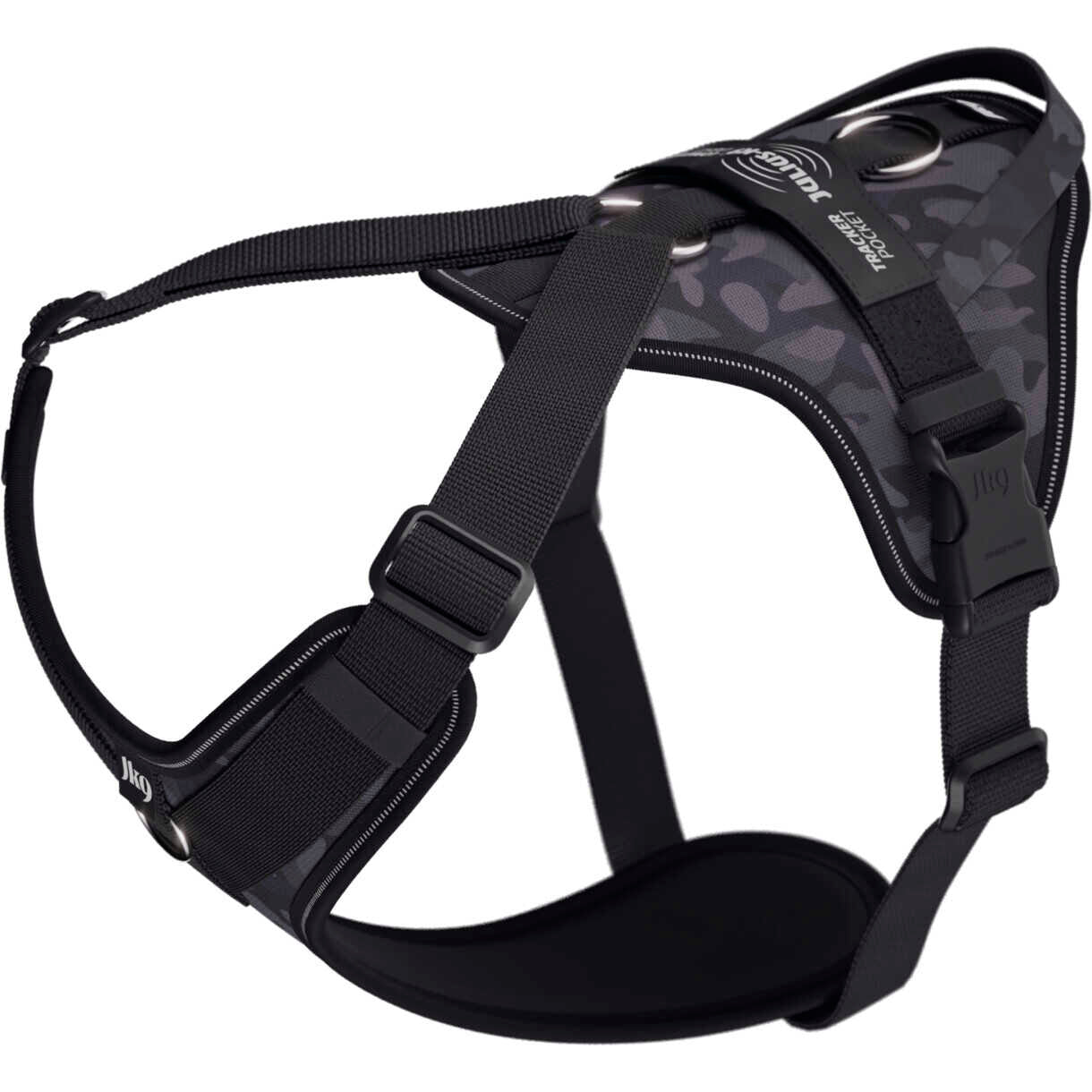 Y-sele med Duo-Flex ADAPTIVE MOVEMENT SYSTEM, Integreret "MOLLE"-SYSTEM på ryggen med håndtag og TRACKERHOLDER-PATCH (lommeåbningen er 40 mm bred, hvilket gør at den er kompatibel med Apple AirTag og enheder af lignende størrelse)