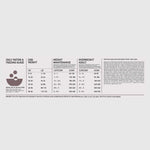 Metaboliserbar energi er 3530 kcal/kg (425 kcal pr. 250 ml/120 g kop). Kalorierne er fordelt for at understøtte den bedste kondition med 45 % fra protein, 22 % fra kulhydrater og 33 % fra fedt.