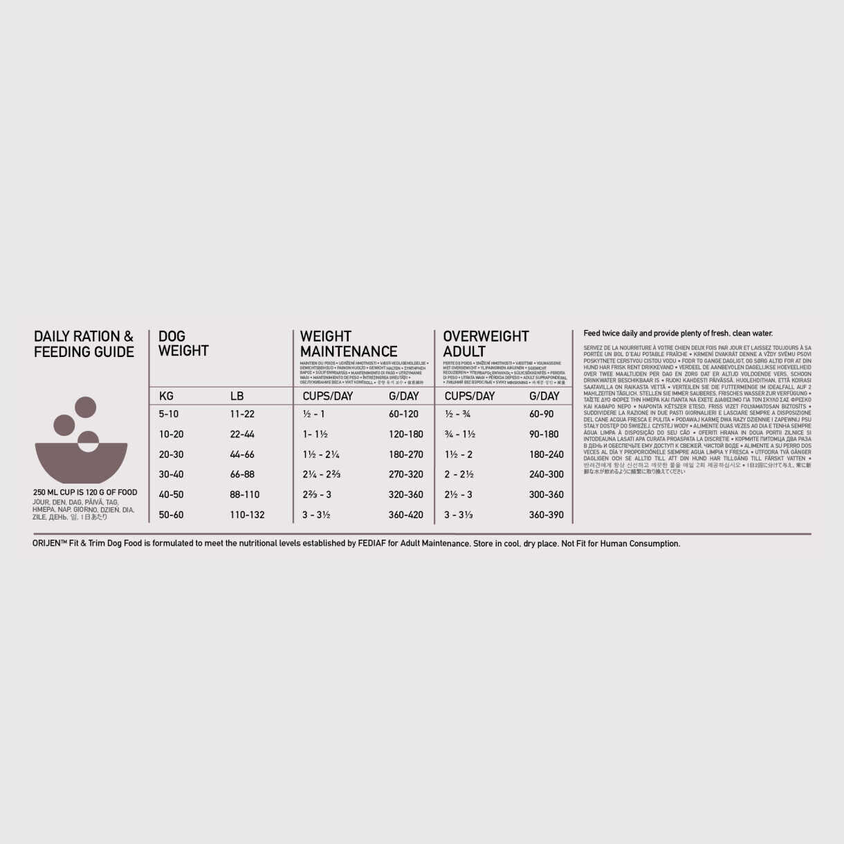 Hjælp din hund med at trives med proteinrige opskrifter, der giver maksimal næring. Hunde er oprindelige kødædere, så de har brug for en Biologically Appropriate™ kost, der er rig og varieret på fuldgyldige animalske ingredienser. ORIJEN Fit & Trim er optimeret til at understøtte mager muskelmasse og er specielt designet til at understøtte maksimal fysisk kondition. Fyldt med WholePrey animalske ingredienser som organer og brusk, er ORIJEN™ foderet lavet med de næringsrige, saftige dele af byttet for at levere den næring, hunde har brug for. Med 85% kvalitetsfjerkræ og fiskeingredienser og en frysetørret levercoating er dette foder uden sammenligning.