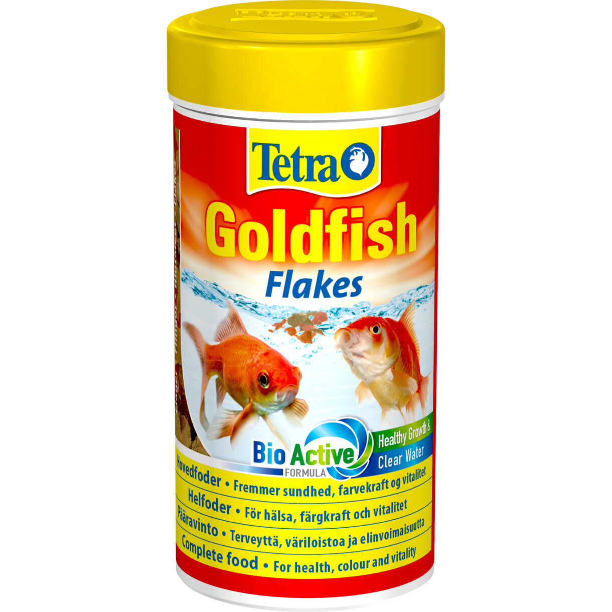 Tetra Goldfish Flakes - Flager til alle guldfisk og andre koldtvandsfisk. Indeholde ralle vigtige næringsstoffer, samt sporelementer. Fremmer sundhed, naturlig farve og Vitalitet. Med Clean- Clear Water formel for mere klartvand.