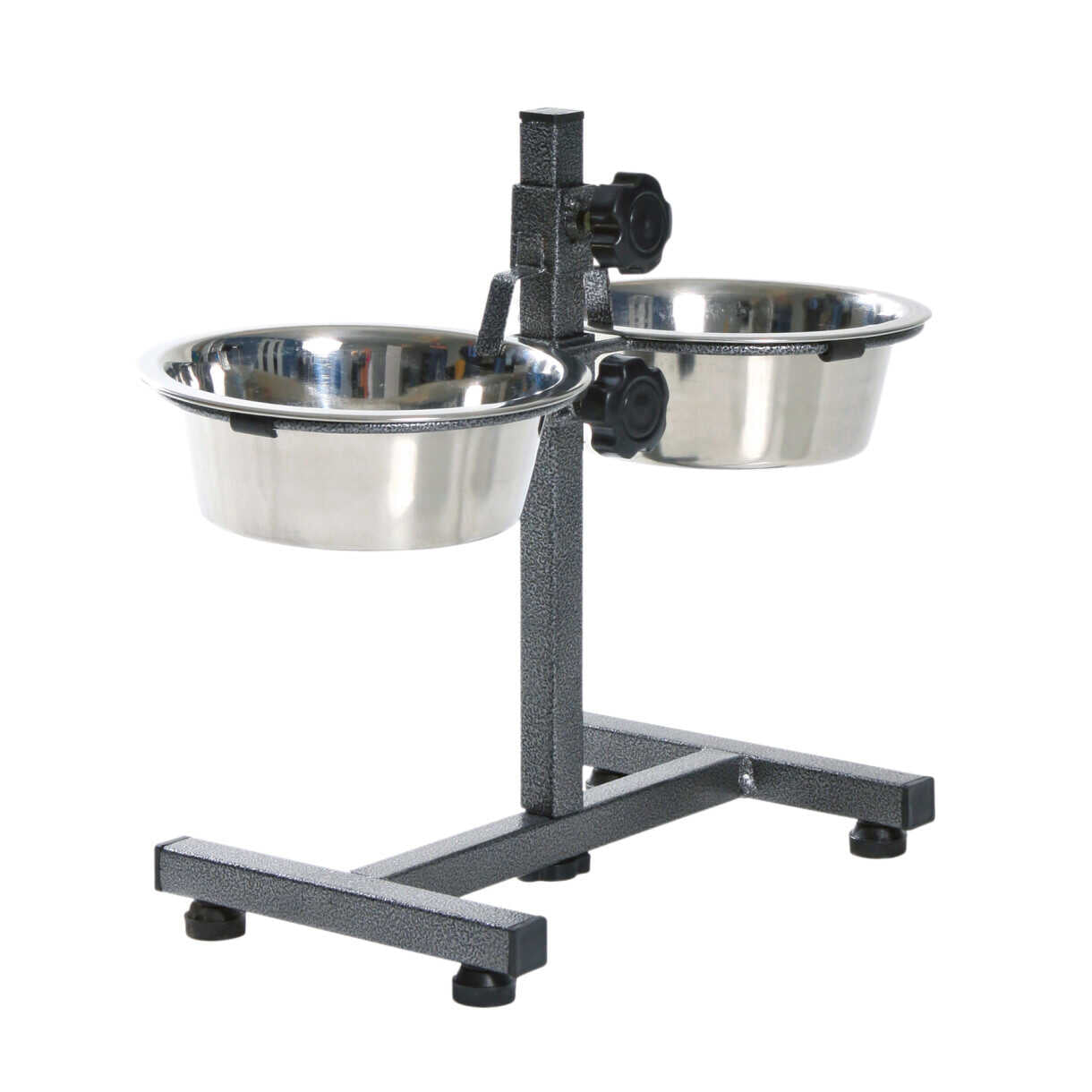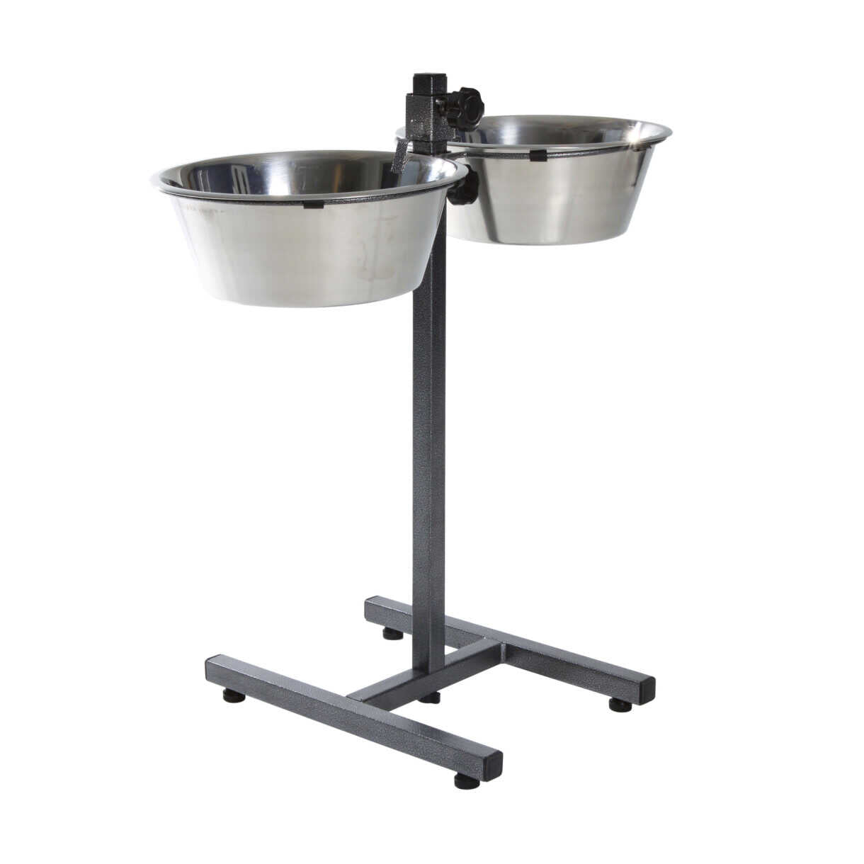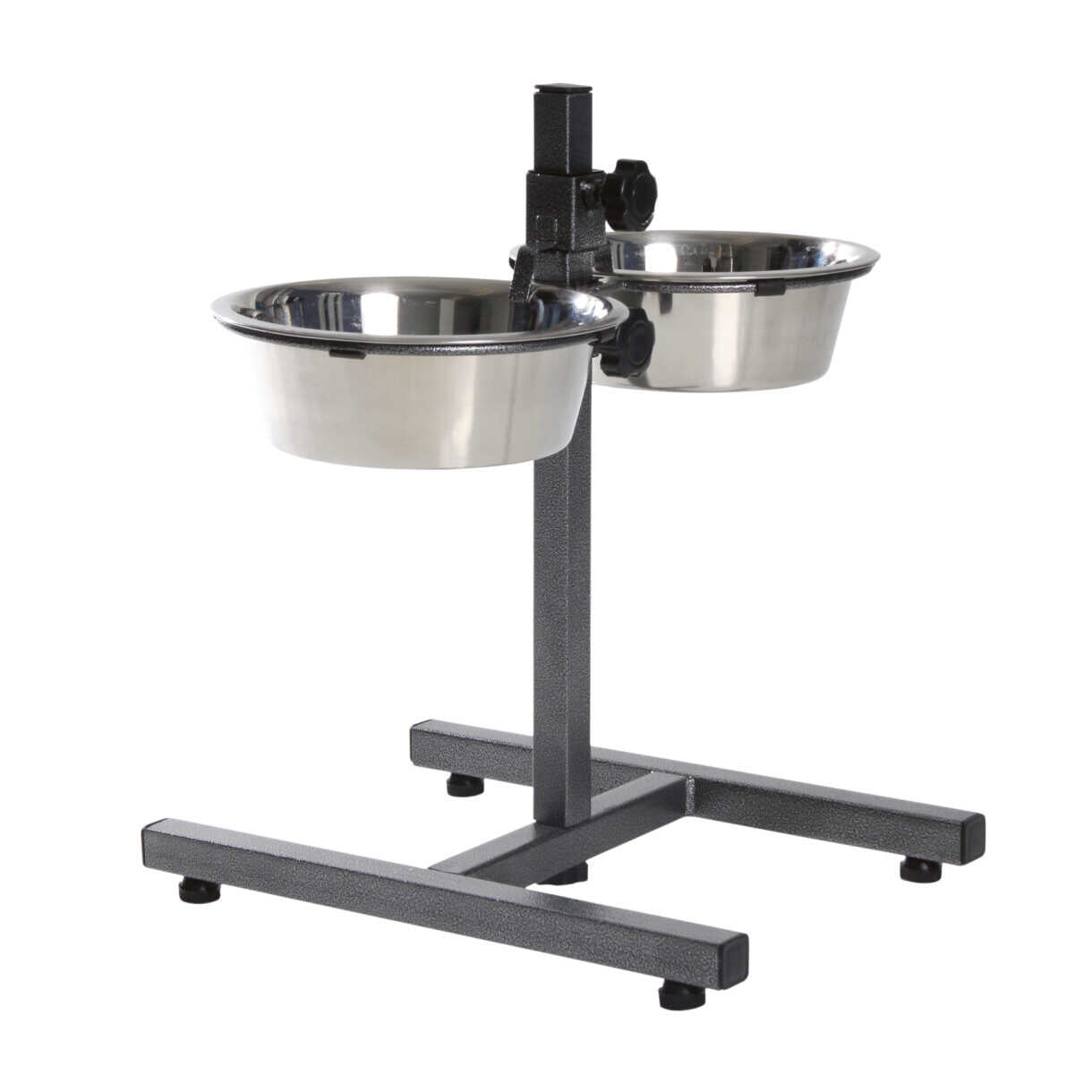 Denne stander inkluderer to rustfrie stålskåle og er designet til praktisk fodring af dit kæledyr. Standen er lavet af metal med en hammerslagsmønstereffekt-lakering, hvilket giver den en stilfuld og holdbar finish. De medfølgende skåle er højdejusterbare, så du kan tilpasse dem efter dit kæledyrs behov og komfort. Der er også en skålelås og støjbeskyttelse af gummi, der sikrer, at skålene forbliver på plads og reducerer eventuel støj under måltiderne. De justerbare gummifødder gør standeren skridsikker og stabil, og skålene er egnet til opvaskemaskine for nem rengøring. Du kan også få ekstra reserveskåle ved behov. Denne stander giver en praktisk og behagelig måde at fodre dit kæledyr på.